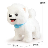 این ربات هوشمند با ارتفاع ۳۰ سانتیمتر طراحی شده و به همراه قلاده ارائه میشود. روی قلاده یک کلید قرار دارد که امکان حرکت و راه رفتن عروسک را فعال میکند. این محصول با باتری کار میکند و مجهز به سنسور نوازش است؛ بهگونهای که با لمس سر، واکنش نشان داده و صدا تولید میکند. از قابلیتهای این عروسک میتوان به تکان دادن فک، دهان، زبان و دم، همچنین لیسیدن دست اشاره کرد. علاوه بر این، امکان پخش صدا و موزیک و تکرار گفتار نیز برای آن در نظر گرفته شده است. موهای عروسک در بسته بندی ممکن است کمی خوابیده باشدکه با شانه زدن یا لمس به حالت اولیه بازمیگردد و به دلیل پولیشی بودن ممکن است جزئیات چهره ویا حالت موها کمی متفاوت باشد ، جنس بهکاررفته در ساخت این ربات ضد حساسیت بوده و قابلیت شستشو با شامپو فرش را دارد، بصورتیکه آب به داخل عروسک نفوذ نکند و فقط کف باشد. این ویژگیها باعث میشود عروسک برای بازی روزمره و حتی استفاده در عکاسی مناسب باشد.